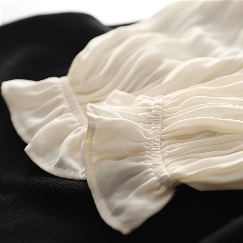 Black and white round neck, cuffs designed to highlight arm lines, versatile basic style, suitable for commuting and leisure.
