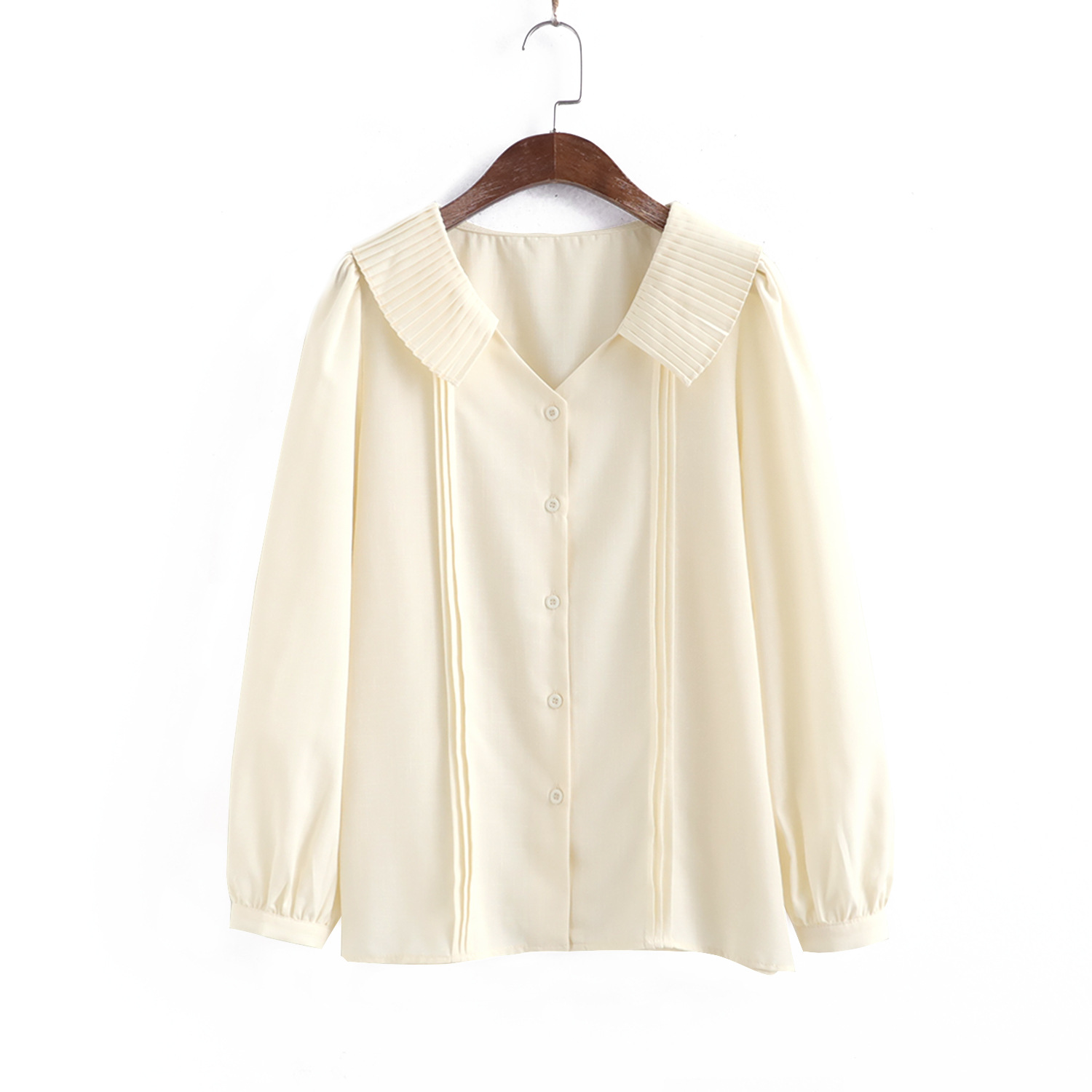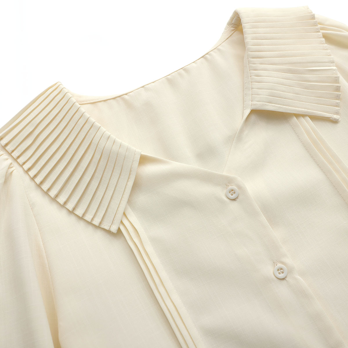 Lapel pleated long sleeved versatile commuting shirt for women
