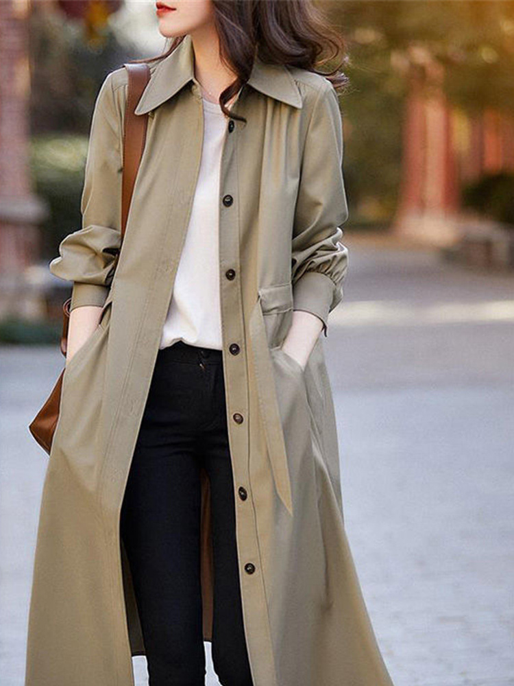 Women's trench coat ladies spring and autumn Korean version of the fashion casual versatile medium-length jacket female coat
