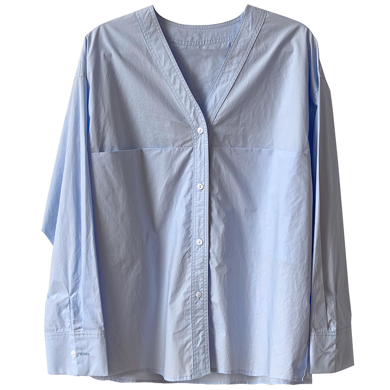 French simple long sleeve V-neck shirt for women