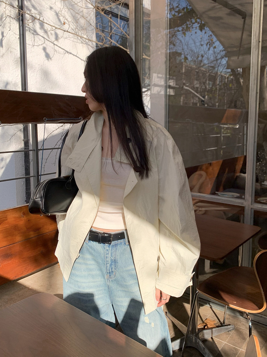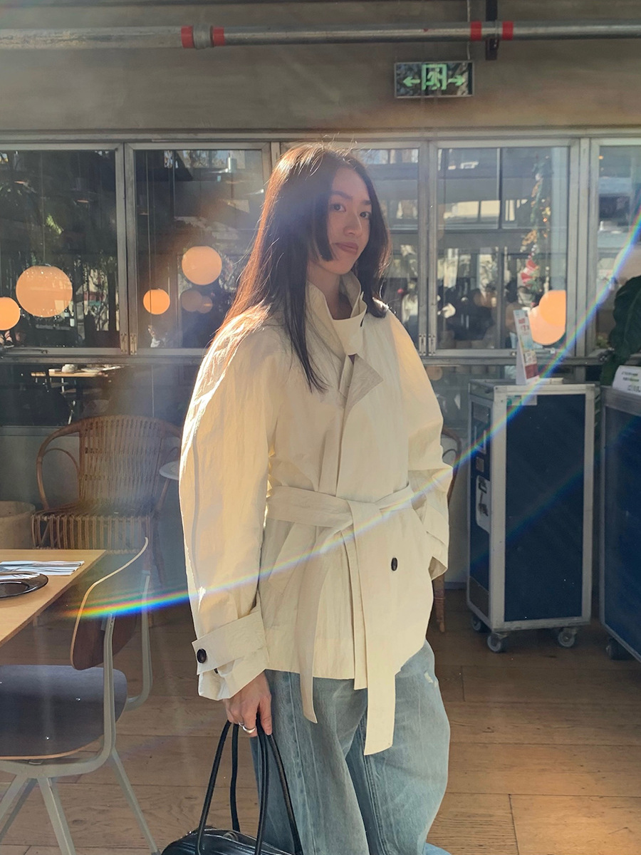 Spring new oblique buckle corset short section trench coat loose temperament commuter jacket female