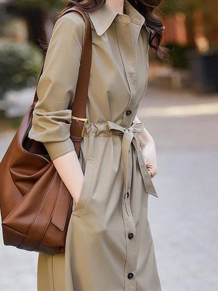 Spring new high-class sense of corset long trench coat simple British style jacket women